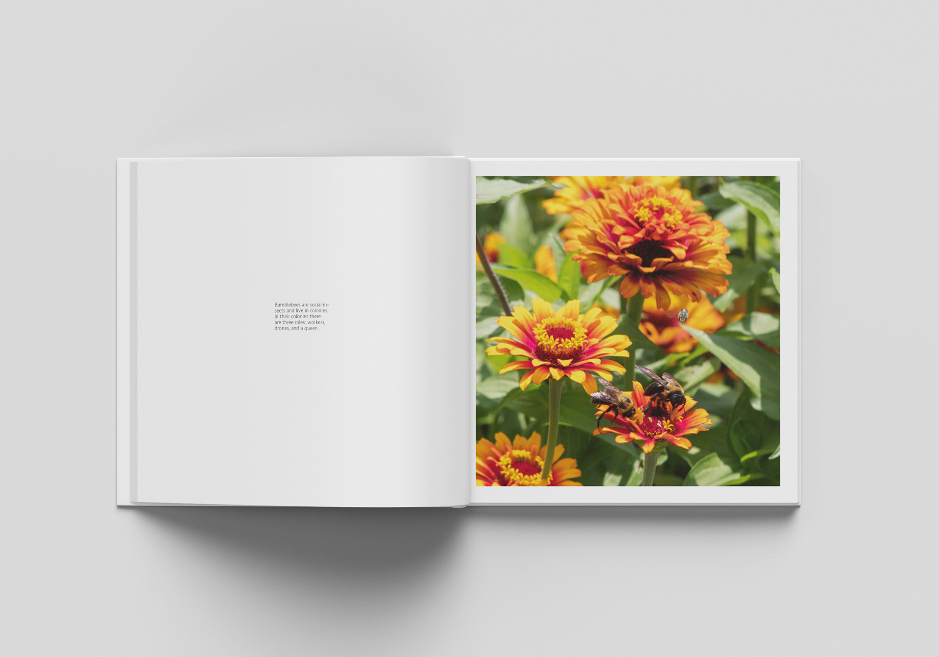 Apiphobia is a photo book exploring my personal relationship with a childhood fear of bees and attempting to cope with that fear by getting up close with bumblebees and exploring them in an intentional context.