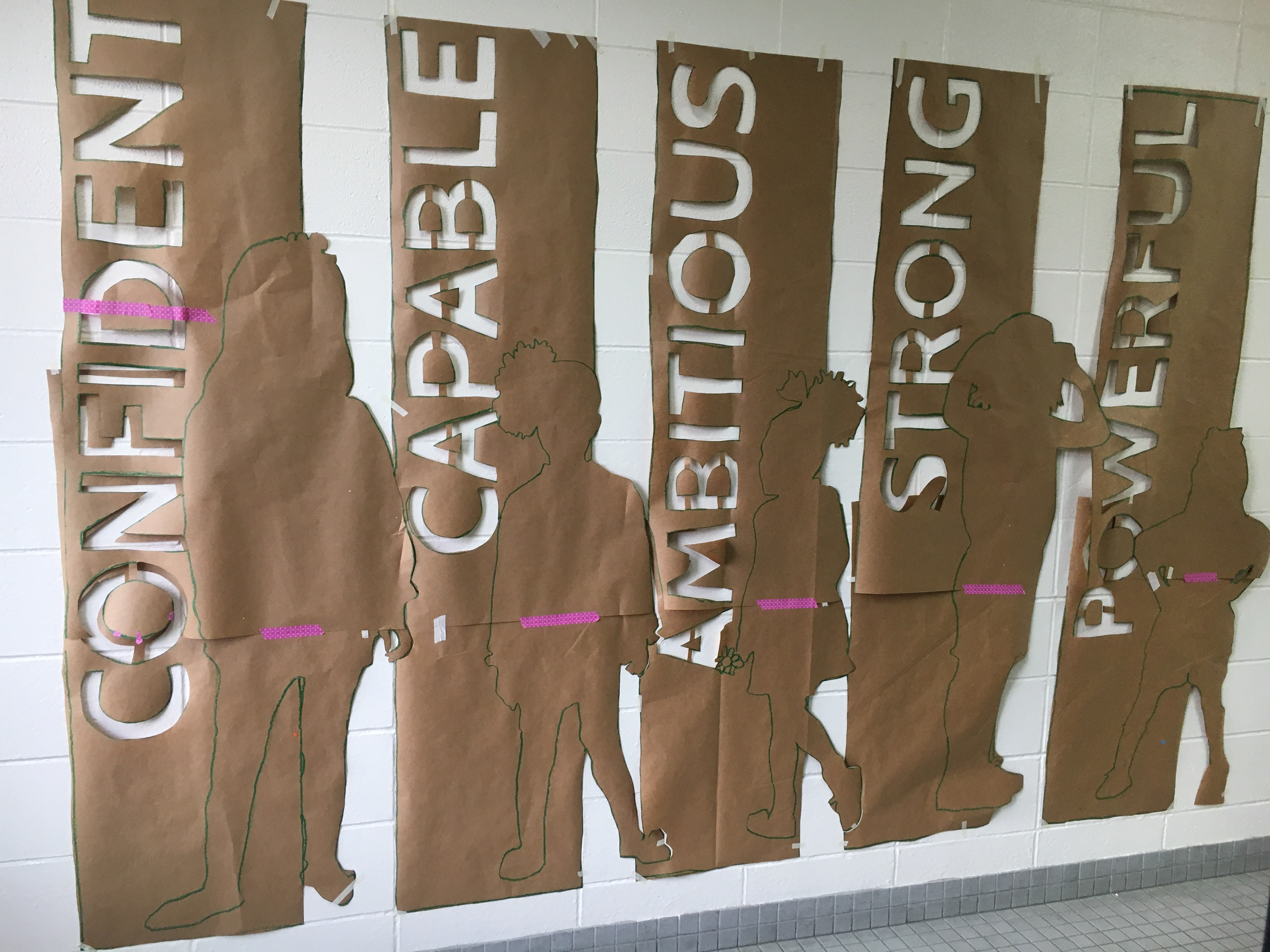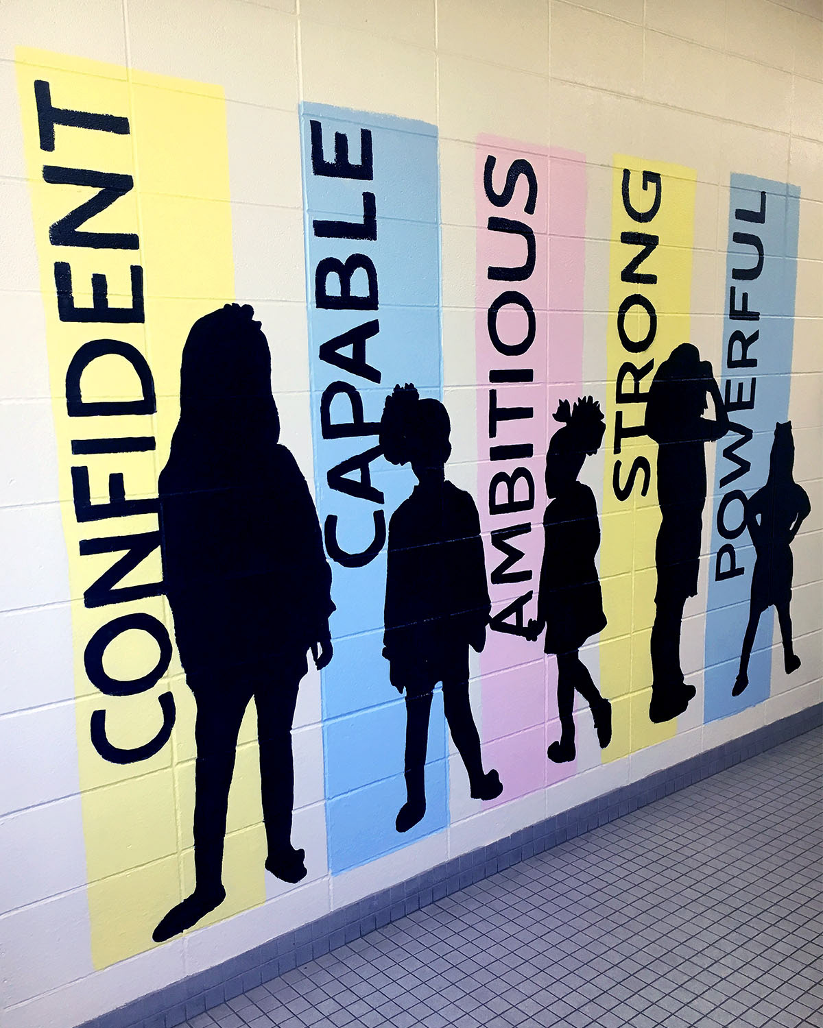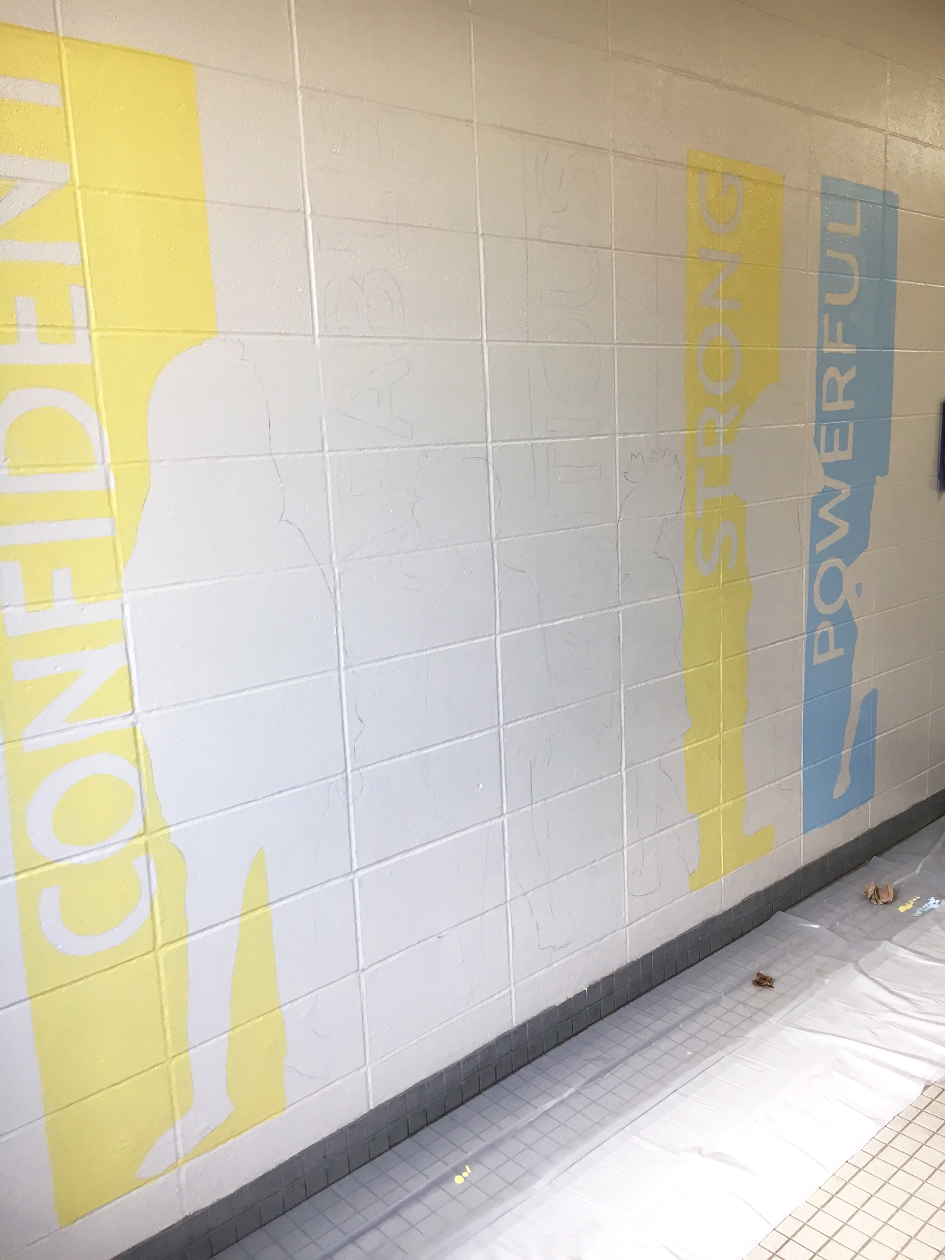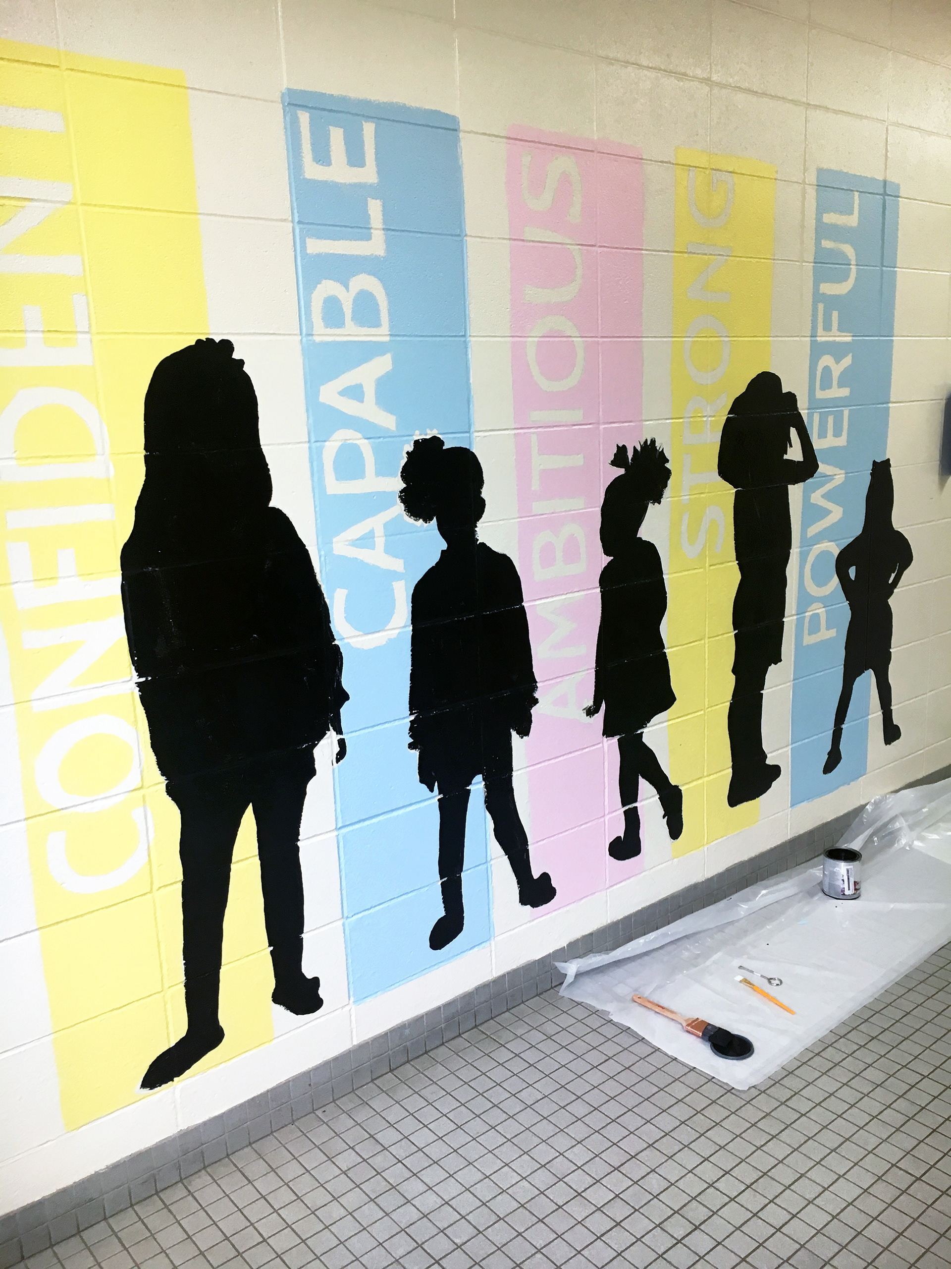 Capstone project. Mural created for John Foster Dulles Elementary School addressing body image in elementary aged girls. Helped to push girls towards more focus on internal characteristics than external characteristics and reaffirm confidence before moving on to middle school.